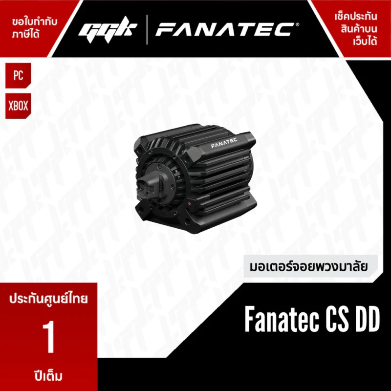 Fanatec ClubSport DD (CS DD) Wheel Base เป็นฐานพวงมาลัยซิมเรซซิ่งแบบ Direct Drive servo motor ให้แรงบิด 12 Nm consistent torque โดยมีการออกแบบเฉพาะเพื่อ ClubSport DD ตามที่ระบุ (custom-designed in Germany)