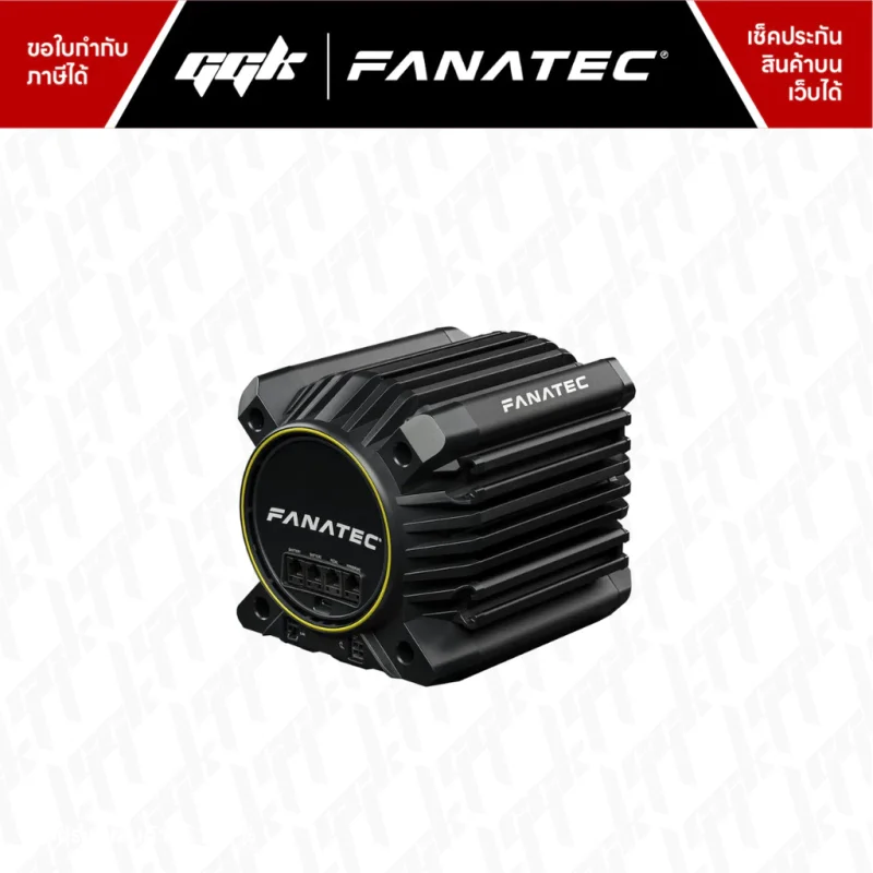 ด้านการตอบสนองและความลื่นไหล ระบุว่ามีการปรับมุม skew ของ rotor magnets เพื่อลด cogging torque และใช้เทคโนโลยี FluxBarrier (patented, exclusive) เพื่อช่วยเพิ่มประสิทธิภาพมอเตอร์และความสมูท ในส่วน force feedback มี FullForce technology และ “new force feedback protocol developed for Fanatec Direct Drive” พร้อมเอฟเฟกต์รายละเอียดแบบ super low-latency ผ่านการควบคุมความถี่มอเตอร์ ตัวฐานใช้การระบายความร้อนแบบ passively cooled และระบุว่าให้ความเสถียรด้านความร้อนสูงในคลาสของตัวเอง ด้านโครงสร้างและการติดตั้ง มี diecast aluminium พร้อมงาน CNC-machined finish, โมดูลอิเล็กทรอนิกส์รวมกับแกน (electronics module integrated with shaft) และมี T-nut rail system ด้านข้าง/ด้านล่างสำหรับ hard-mounting ที่ปรับได้