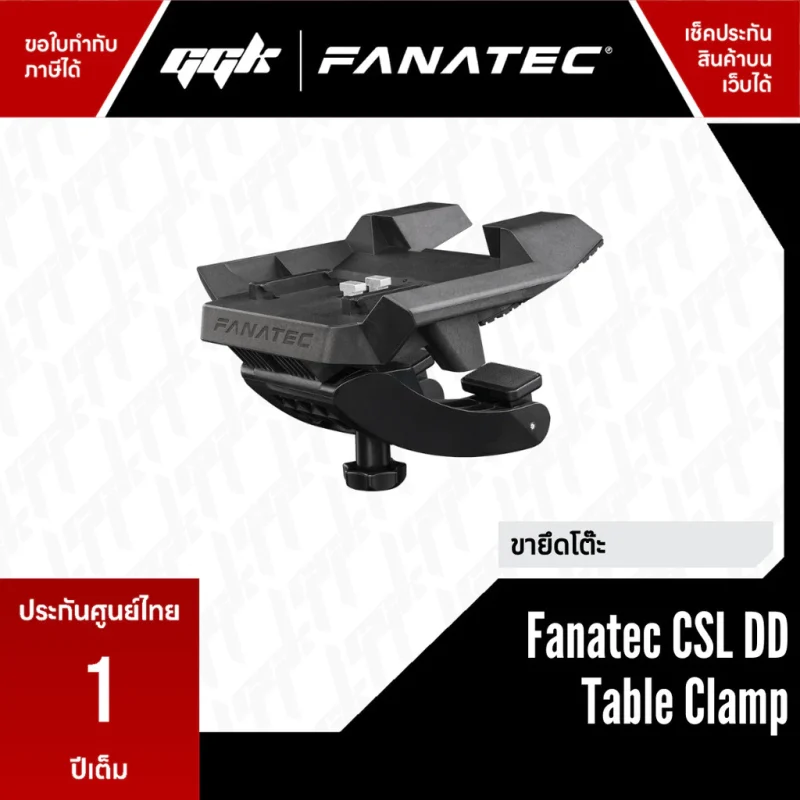 Fanatec CSL DD Table Clamp (Standalone SKU) คือแคลมป์สำหรับยึด wheel base เข้ากับโต๊ะหรือเดสก์ ออกแบบมา เฉพาะ เพื่อใช้งานกับ Fanatec CSL DD และ Gran Turismo DD Pro ช่วยให้ติดตั้งฐานพวงมาลัยเข้ากับโต๊ะได้อย่างสะดวก