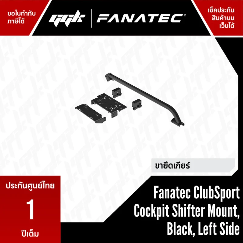Fanatec ClubSport Cockpit Shifter Mount, Black, Left Side คือขายึดอุปกรณ์ ฝั่งซ้าย ที่จำหน่ายแยกสำหรับติดตั้งกับ Fanatec ClubSport GT Cockpit โดยถูกออกแบบมาเพื่อยึด เกียร์ (shifter), เบรกมือ (handbrake) และอุปกรณ์เสริมอื่นๆ ให้มั่นคง