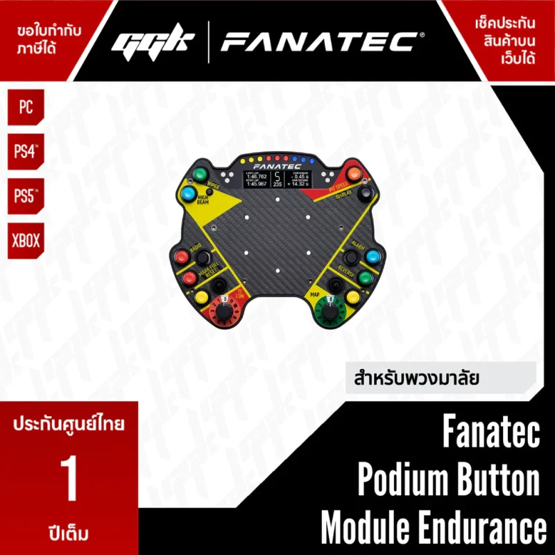 Fanatec Podium Button Module Endurance คือโมดูลปุ่มสำหรับอัปเกรดชุดพวงมาลัยของ Fanatec ให้ได้รูปแบบและการควบคุมสไตล์ endurance GT3 โดยระบุว่าเป็น full-scale replica ของรถแข่งระดับท็อป